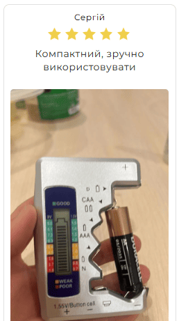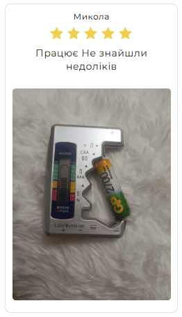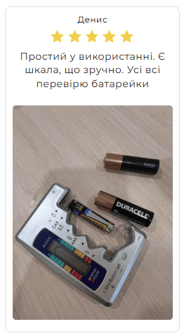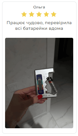 Тестер сумісний з AAA, AA, C, D, N, mini cell, PP3, 9V та багатьма іншими форматами. Один прилад для всіх батарейок у домі!