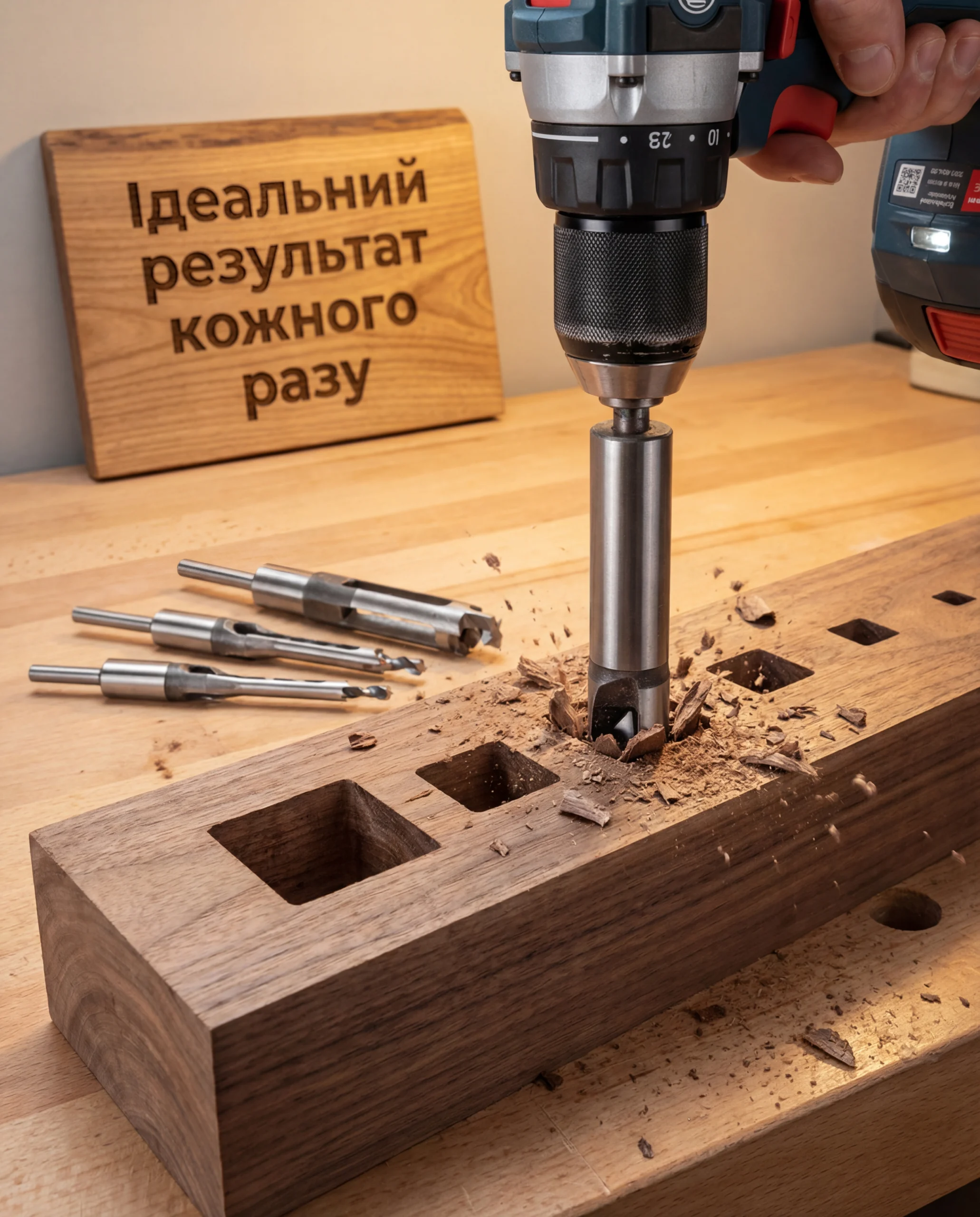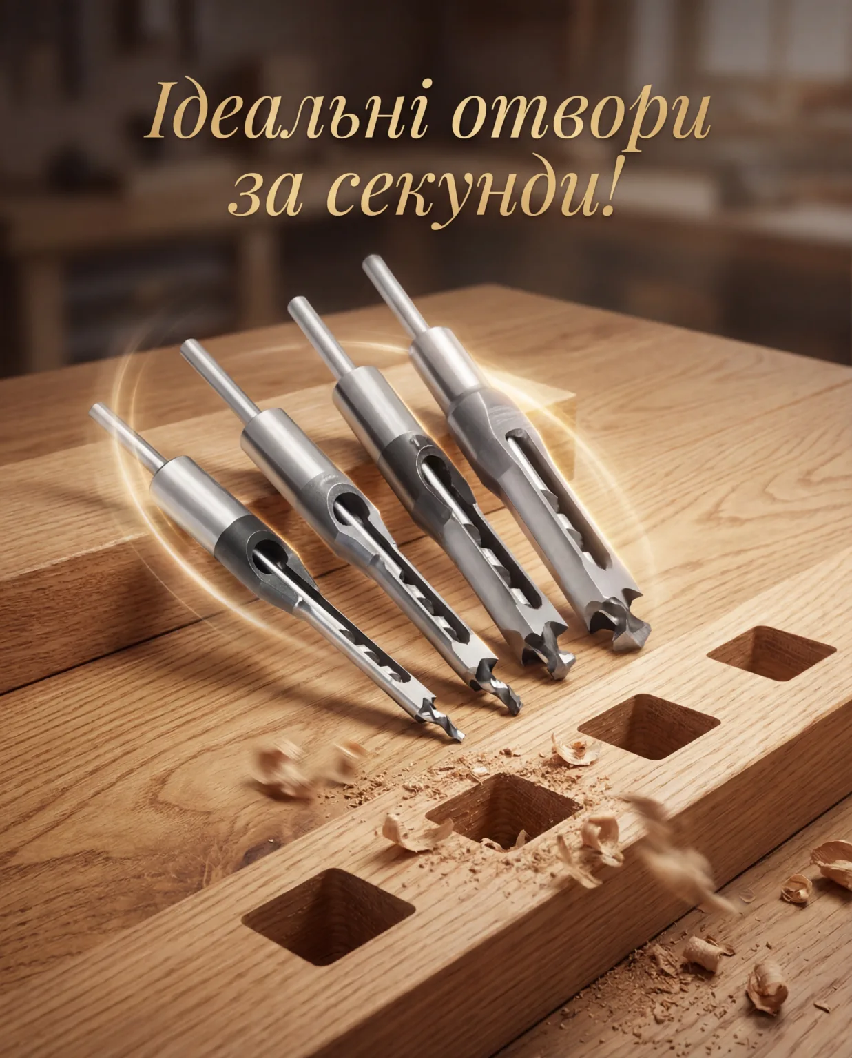 SquareDrill значно прискорює процес свердління квадратних отворів, роблячи ваші проекти більш ефективними. Ідеально підходить для столярів, меблевиків та любителів DIY!