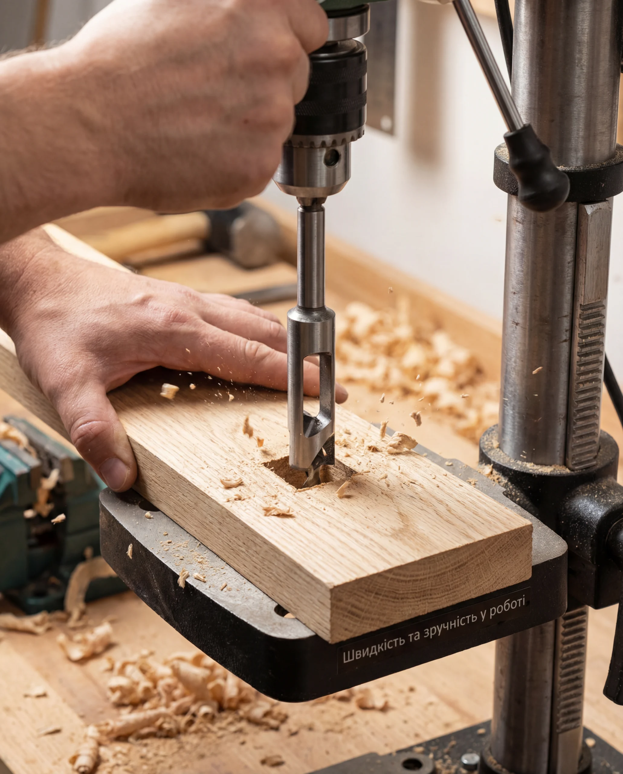 Підходить для різних типів деревини та може використовуватися з більшістю стандартних дрилів.